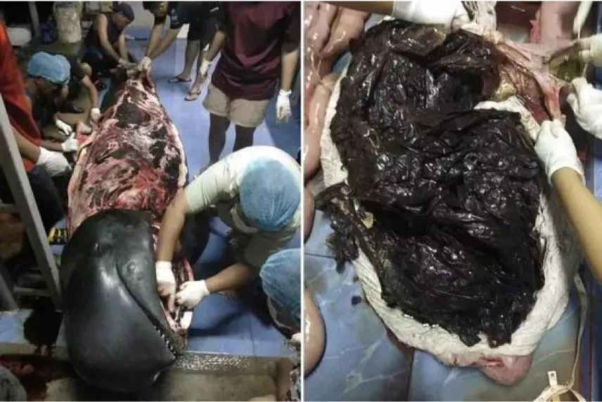 圖:誤食80個(gè)塑料袋(重達8千克)βγ©≠死亡的(de)鲸魚
